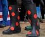 Aber dann reden wir mal über einen “Mitmachwahlkampf” – mit Kontrollverlust und den kurzzeitig vorhandenen Schweißperlen auf der Stirn der Verantwortlichen: Irgendwie in diesem Sinne haben eine Freundin aus Leipzig und ich an diesem verregneten Wochenende in Vorbereitung und während eines Events mit weiteren Freunden die Idee der roten Punkte aufgegriffen und dank unserer übersprudelnden Ideen immer weiter entwickelt. Ursprünglich haben wir nur ein paar Punkte für ein Paar Gummistiefel ausgeschnitten. Am Ende sind für einige Menschen im Gespräch mit der lieben Freundin und dank ihrer zeichnerischen Fähigkeiten ganz individuelle Punkte entstanden, die ihre Eigenheiten, ihre Macken darstellen oder mit Dingen, die sie ganz persönlich ausmachen. Nicht zuletzt: Alles politisch aktive Menschen. Alles vergleichsweise harmlos.