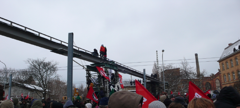 - Nazis in Schöneweide in Treptow-Köpenick durften zunächst nicht aus der S-Bahn raus, da der Bahnhof von Gegendemonstrant_innen blockiert war. Statt 400 Nazis kamen nur 150. Ihr Nazi-Konzert durften sie dann nur unter Ausschluss der Öffentlichkeit und unter einem dicken, fetten Transparent ”Berlin gegen Nazis” abhalten.